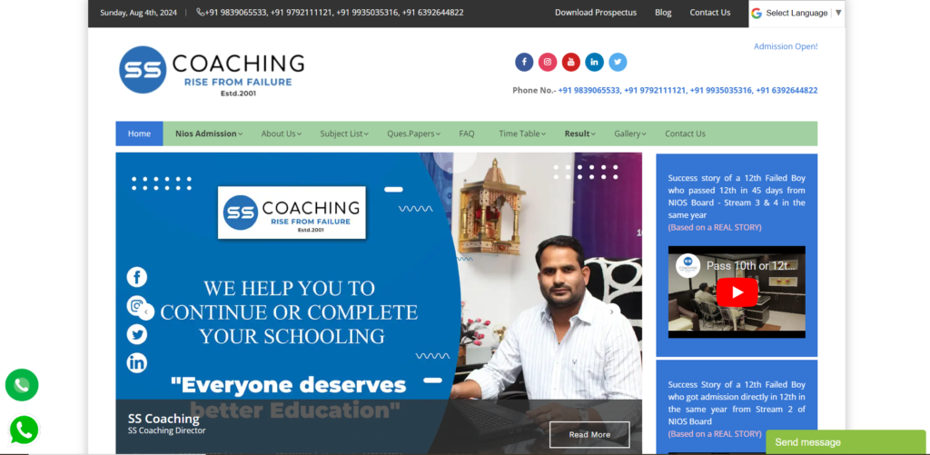 SS Coaching is a reputable specializing in NIOS (National Institute of Open Schooling) coaching and admission services. The project’s primary objective was to enhance online visibility, attract more students seeking NIOS coaching, and increase admissions through the website.